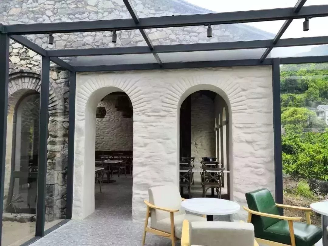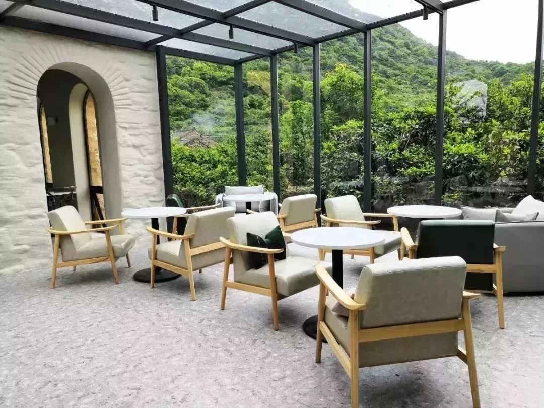 民宿位於村莊的深處,尋找路標指引,走進民宿大堂,大堂左側便是陽光房。