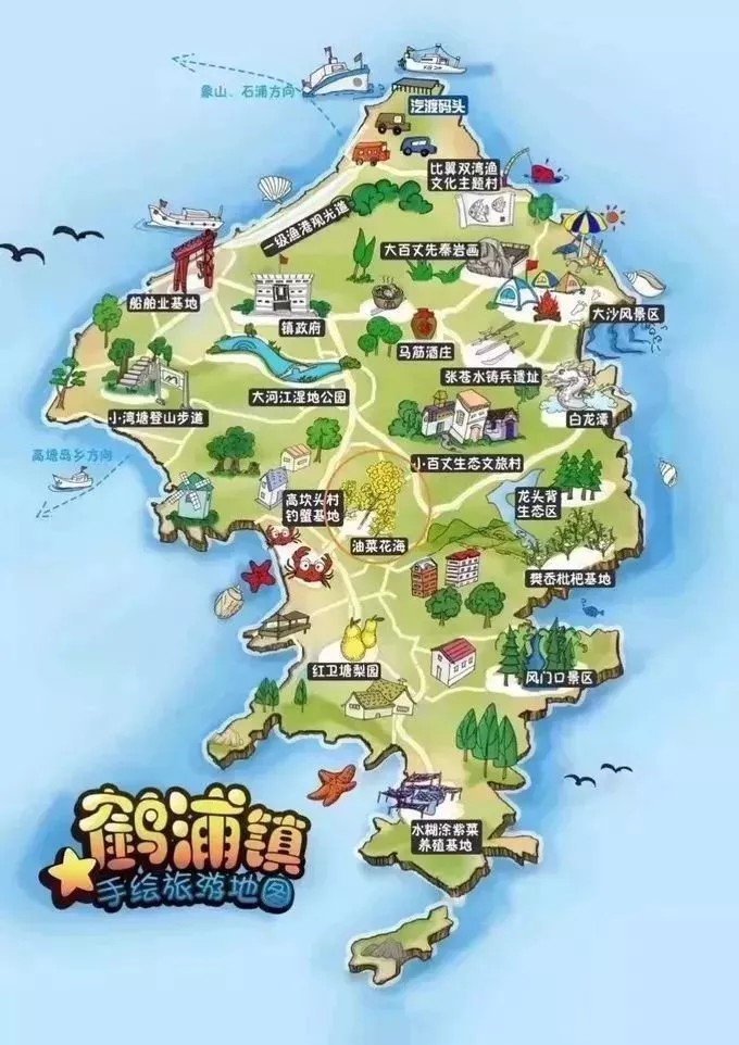 沿岸78公里的海岸線,灘灣眾多,自然景觀引人入勝,島上風浪小,海水清澈,大沙、風門口等景區金沙碧海,奇岩怪礁,林木蔥鬱,是休閒養生、牧海垂釣的好地方。