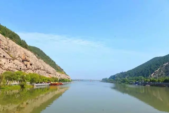 伊水清澈,遠山近景,蒼翠欲滴