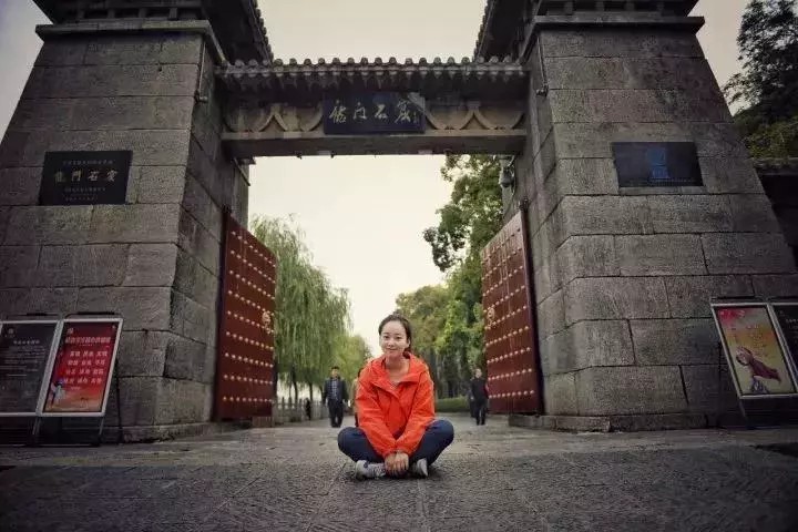 將自己的倩影和龍門秀美的山色一起裝入鏡頭