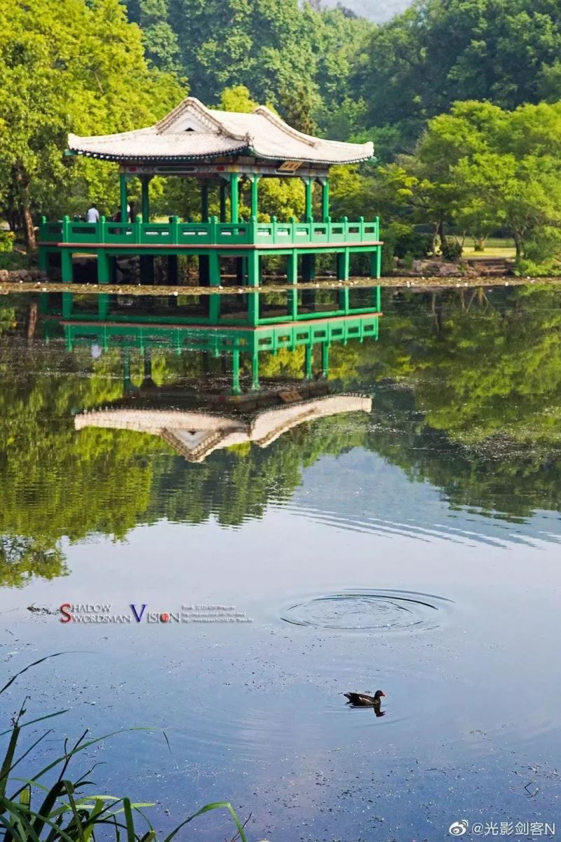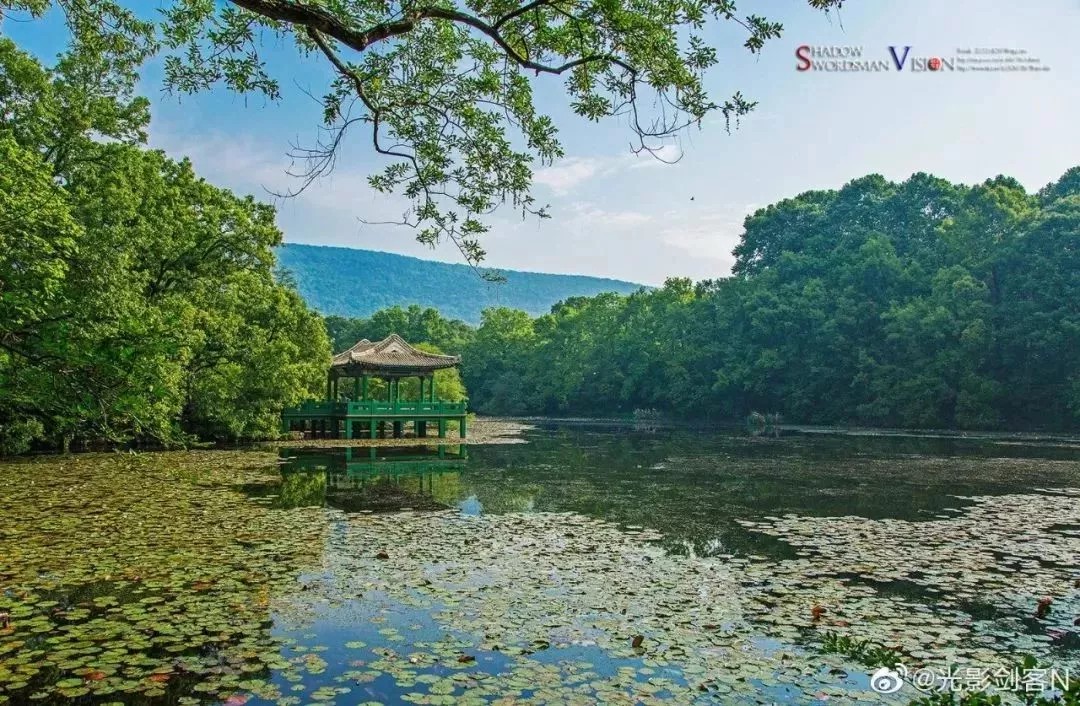 夏天的鐘山風景區,是一個密林水境,水面如鏡。流徽榭位於南京市玄武區紫金山鐘山風景名勝區內,在中山陵至靈谷寺公路的南邊,又名水榭亭。