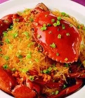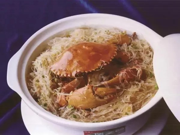 蟹處理好斬件,開鍋下油,爆香薑片和蔥白,下蟹件大火翻炒片刻,攢少許米酒,以鹽、糖、胡椒粉調味後取出備用;將粉絲煮好後,倒回炒香的蟹肉,慢火煮至水分收乾,吃時撒上蔥花即成。