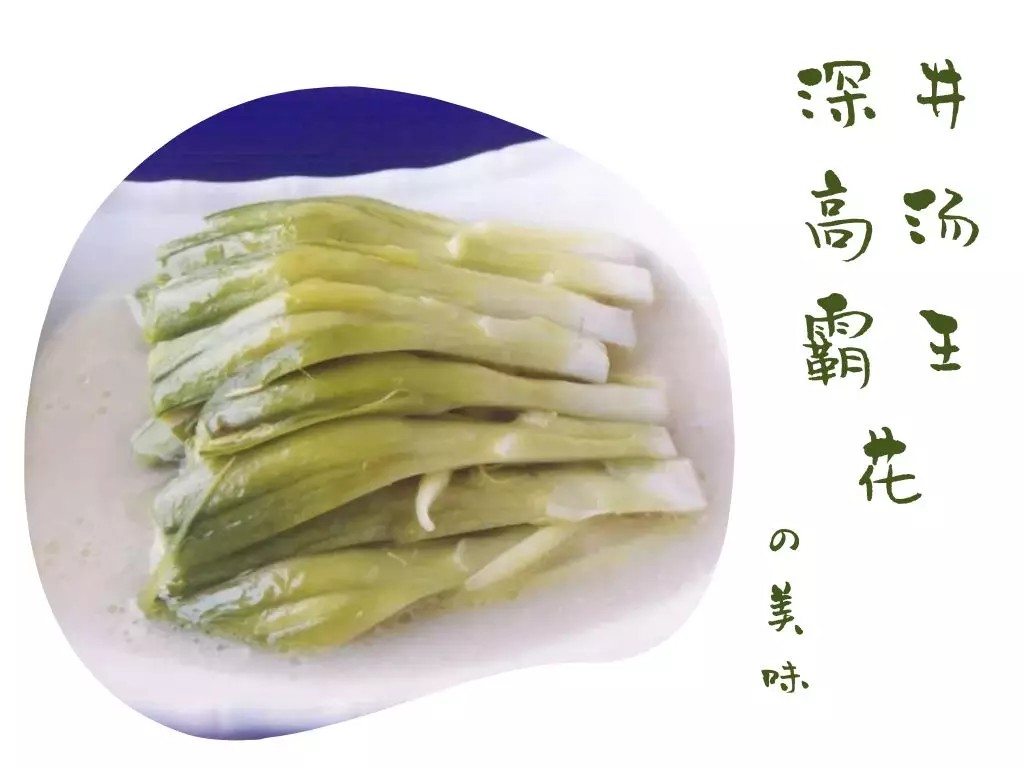 “丹水菜”其實是用丹水坑水澆灌出來的菜心,據聞丹水坑龍泉是楊四將軍廟的龍脈所在,地下清泉從龍口噴出,水質純美,因此由龍泉灌溉出來的菜心比別的地裡種出來的菜心更加翠綠,更加甘甜清爽。