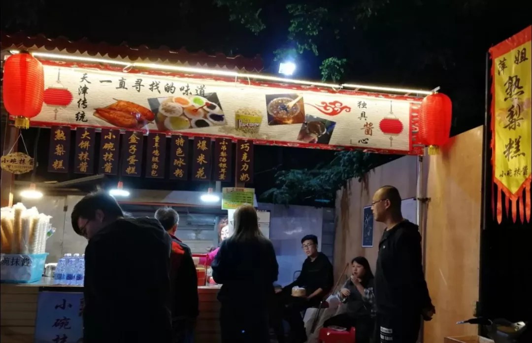 和天津其他大大小小的夜市一樣,刨冰,燒烤應有盡有,炒燜子,炸鮮奶,麻辣燙,這些美食這在裡不超過20元錢就能吃的飽飽的。