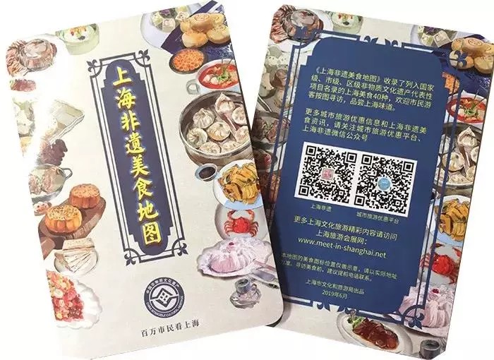 上海非遺美食地圖精選列入國家級、市級、區級非物質文化遺產代表性項目名錄的上海美食40種,繪製成精美的地圖免費發放,便於市民遊客按圖尋訪,品嚐上海味道。