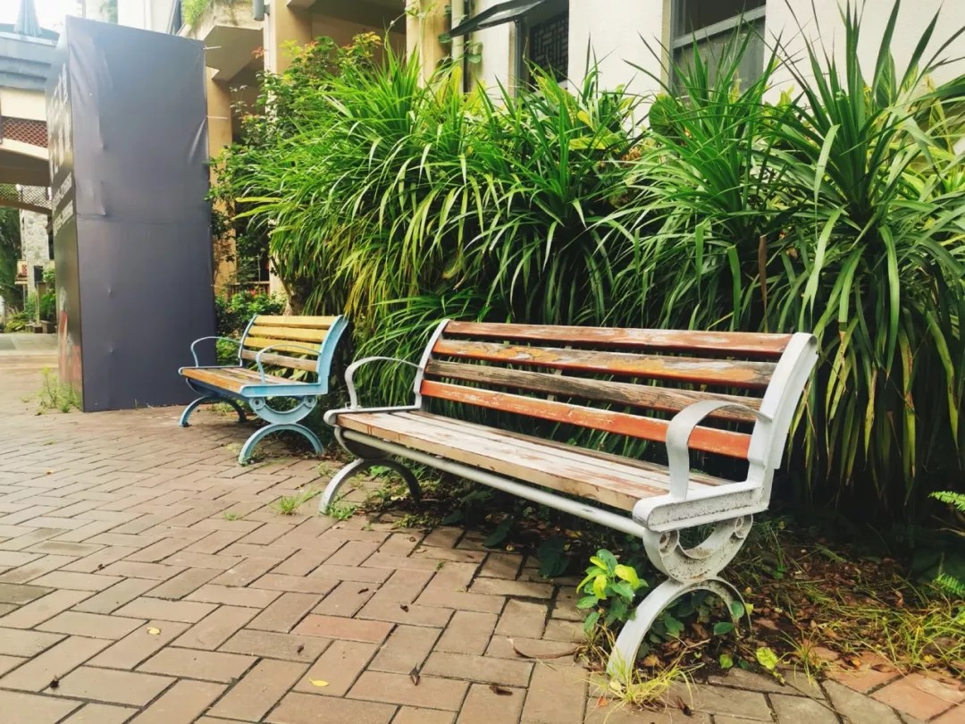 園區內有許多可供休憩的長椅