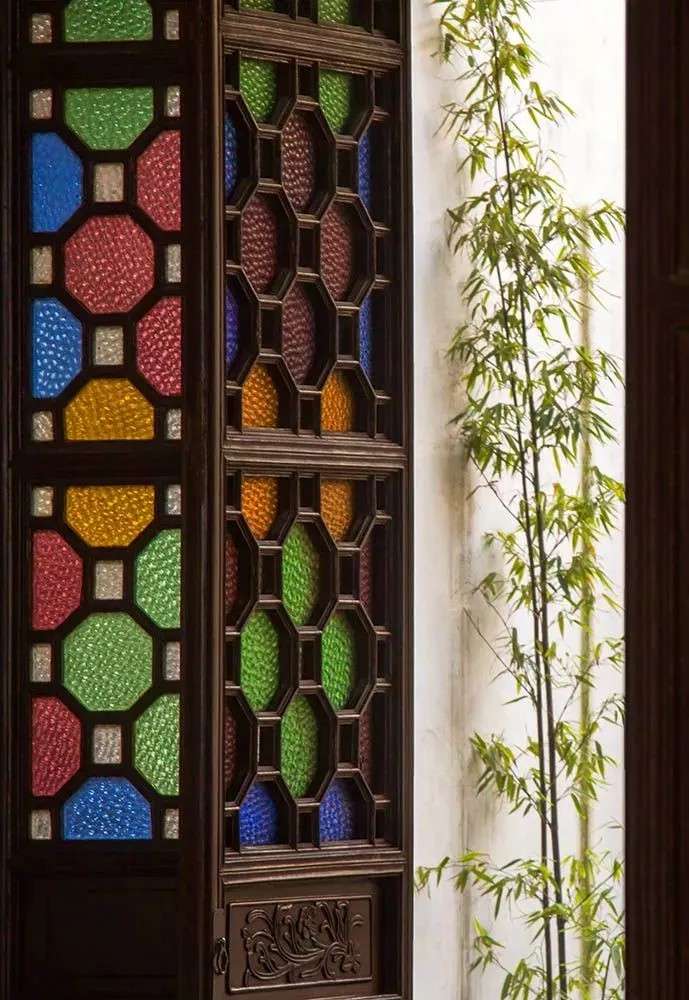民國染料大王貝仁元買下獅子林重修之後,延請劉臨川主持重修獅子林,也大量使用了彩色玻璃元素。給獅子林這一江南園林帶來了不一樣的光彩……