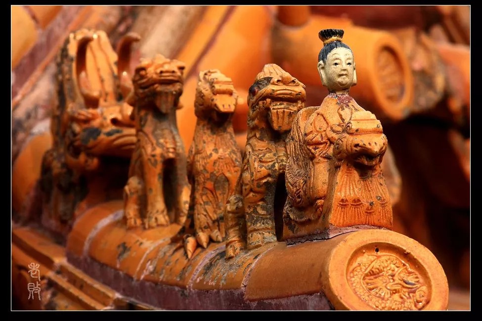 趙長安很幸運,他在苦心研究琉璃製造技藝的同時,還參與了很多大型建築的修復工作。故宮太和殿房頂琉璃瓦的更換,趙長安不但全程參與,還親手複製了其中的幾個走獸。“太和殿2006年大修,要求修舊如舊。當時把琉璃瓦全拆了下來,原來的舊瓦挑一些好的裝回去,釉剝落得較多、但坯體還不錯的,把釉打掉然後上釉重燒一遍,再加上一部分新瓦。太和殿屋脊的走獸有11個,這11件東西是二級文物,每天搬岀來複製,晚上要擱到一個地方鎖起來,專門有人保護。就說複製這仙人吧,它是明式的,比清式的複雜很多,而且很大。我有幸複製仙人騎雞(是鳳凰的造型,但皇后是鳳,因名諱,就叫仙人騎雞),要保證和太和殿的一模一樣,羽毛一根都不能多,一根也不能少。我做了8個仙人,光那個仙人騎雞就做了2個月。”趙長安說。