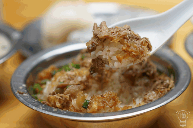 一顆顆油潤晶亮,鋪滿肉絲和油條
