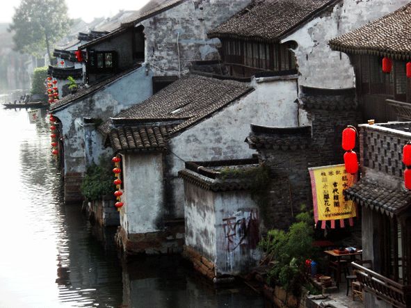 西塘古鎮中最著名的,要數那長達近千米、造型古樸的廊棚—— 帶屋頂的一條街。廊棚以磚木結構為主,一色的墨瓦蓋頂,沿河而建,連為一體,既可遮陽避雨,又可駐足觀景,如此蜿蜒而和諧的廊棚,在江南古鎮中尤顯特色。