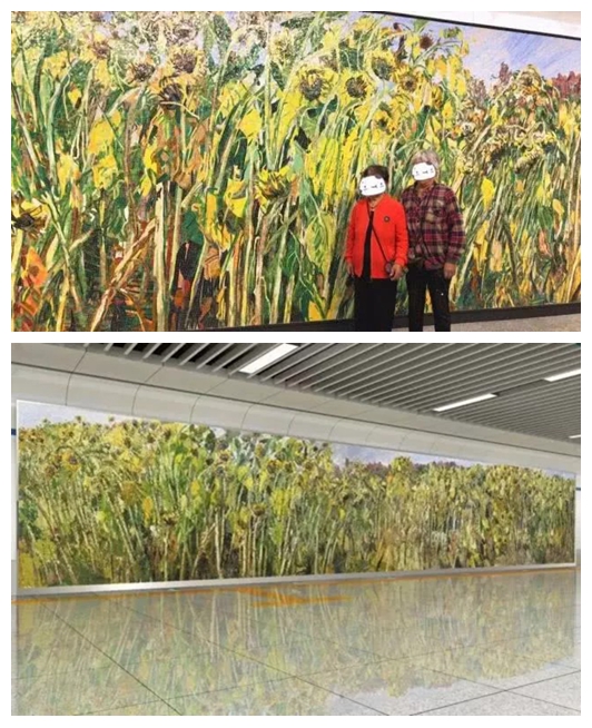 東方廣場站展現出充滿朝氣的向陽花在東北黑土地上茁壯成長的景象,寓意著長春這座城市不僅綻放著友情、親情、愛情,也承載著春城人民對大自然和生活的無限熱愛之情。