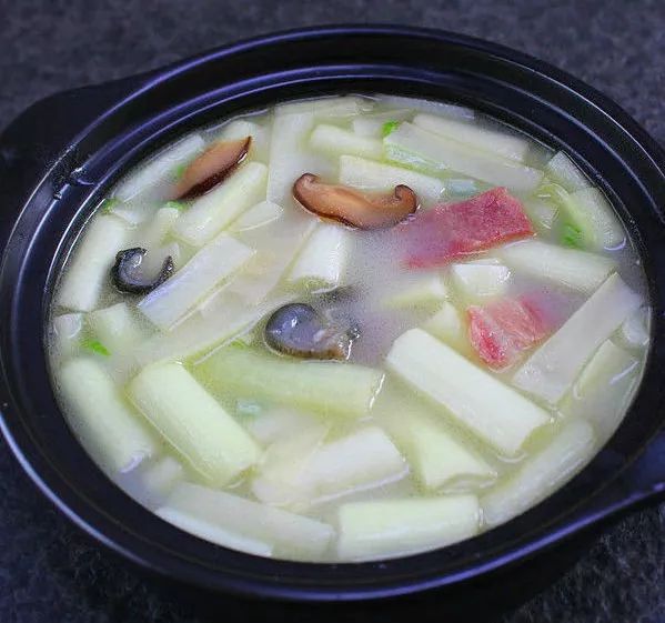 而這其中最獨特的不是別的,而是一道湯—— 奶湯蒲菜。奶湯蒲菜是濟南的特色傳統名菜,更是經典魯菜之一,用雞鴨豬骨熬製的乳白色的湯配上脆嫩鮮香的蒲菜做成,歷來被譽為濟南第一湯菜。