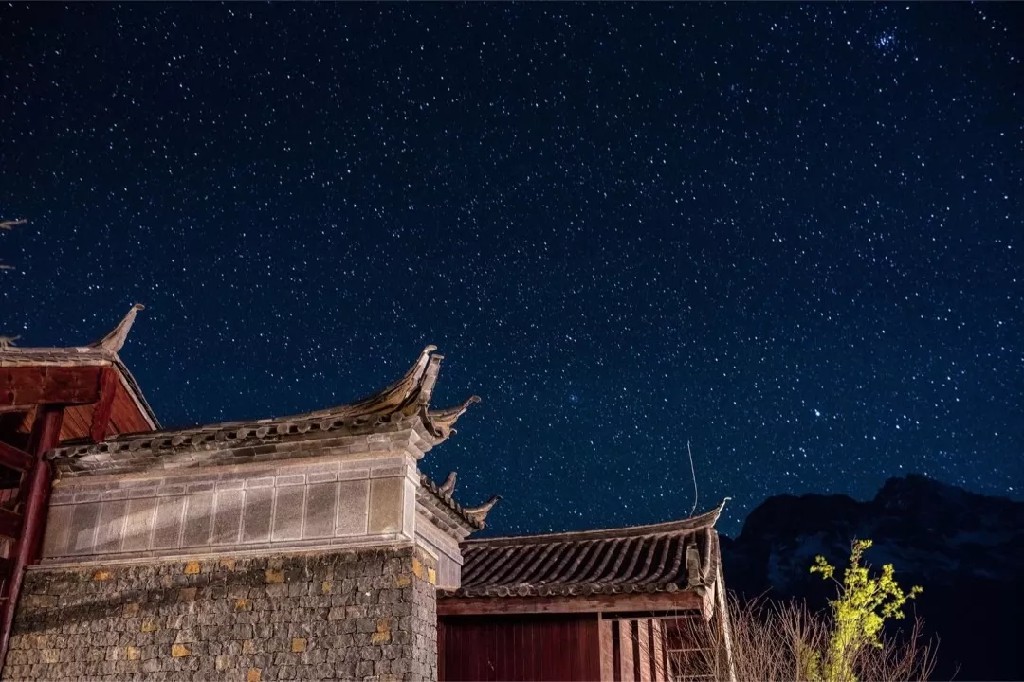 玉龍雪山的景緻,從晨光微露到滿天繁星,姿態變換莫測、各不相同。清晨,攜裹著凜冽的山風吹來,玉龍雪山雲霧繚繞,一派清冷;夜幕降臨,高原的星空格外黑,繁星點點閃爍,格外耀眼,浩瀚的星河彷彿觸手可及。