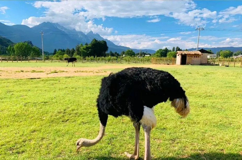 園區內,還有愛的梅花鹿、鴕鳥、黑天鵝、羊駝……圈養在一格一格的小柵欄中,一副慵懶而愜意的做派,有人走過,隨意抬頭看一眼,又繼續吃自己的草。