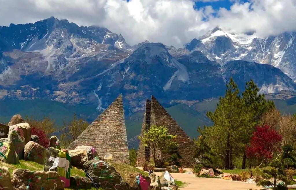 在通向玉龍雪山的路途中,有個景色優美卻鮮為人知的景點——東巴祕境。景區佔地面積很大,彷若玉龍雪山腳下的後花園,樹木茂密,百花爭妍。