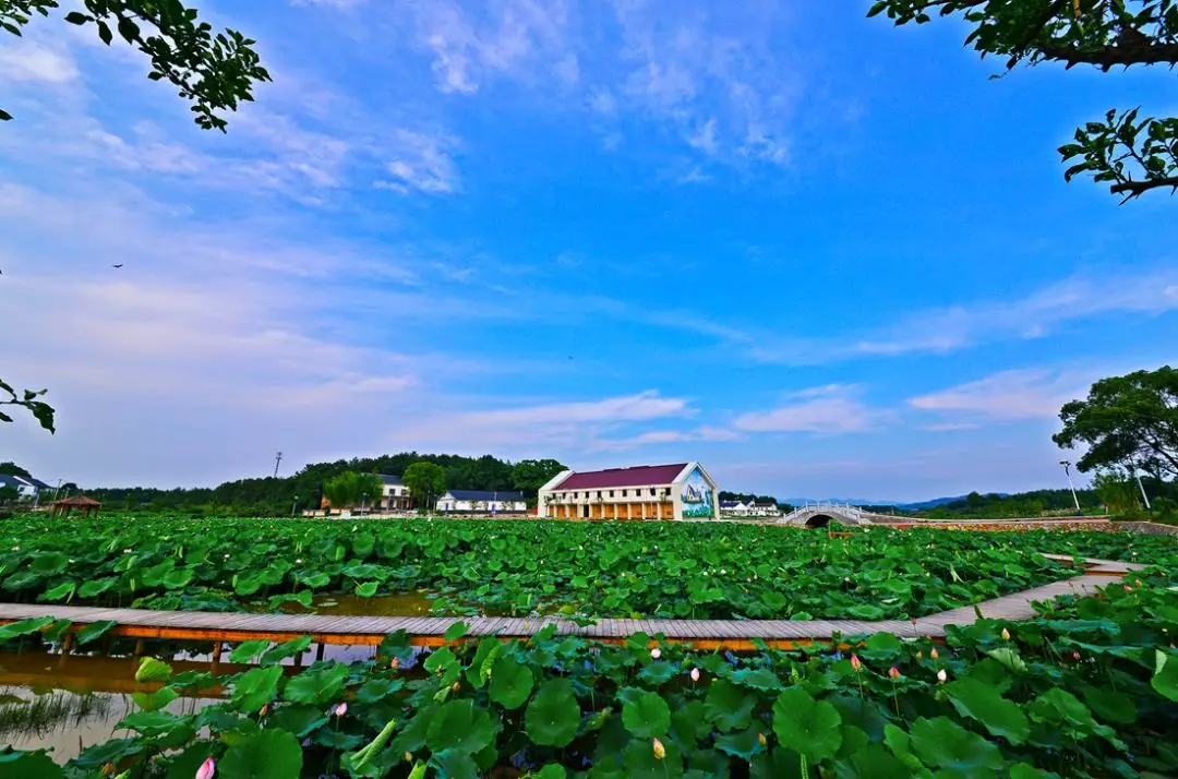 橋西殷家荷花基地位於余江區西北部,距離城區3公里。這是一處以荷花為特色的鄉村旅遊點。獨特的鄉村風貌,映著這滿塘荷花,原生態的自然景色與鄉土文化相互融合。踏步至此,讓人忘卻無數煩惱,那舒展的一片片蓮葉,盛放的一簇簇荷花,一圈圈似碧玉,一層層似丹霞,美艷動人,讓人為之沉醉!