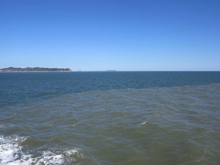 蓬萊北臨黃、渤海二海可見“涇渭分明”的奇觀