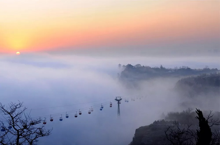 遊客乘坐索道時,有騰雲駕霧、神仙逍遙之感。