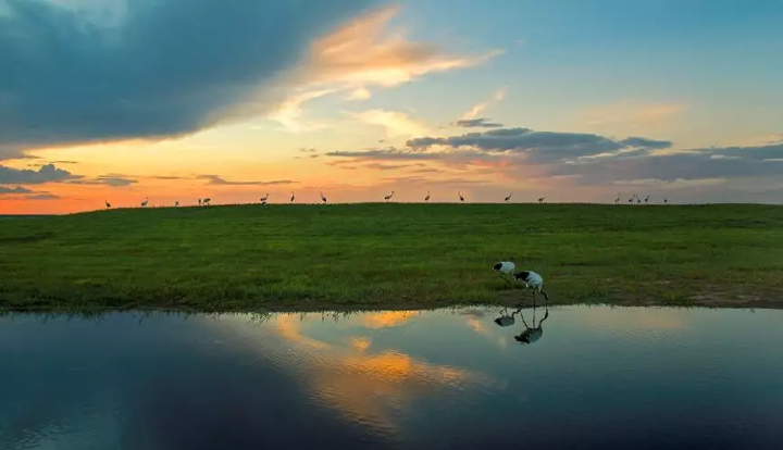 在這裡生活著國家一級保護動物——丹頂鶴,它們在這風景秀麗,生物品目繁多的地方繁衍生息。