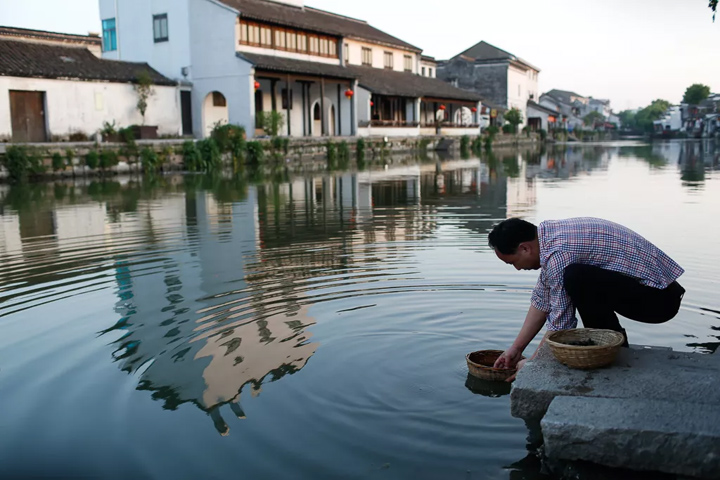 晨間,水面波光粼粼,人們挽籃提桶,紛至遝來,