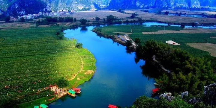 霞客桃源景區位於三里洋渡鄉村旅遊區內,距離上林縣城12公里。三里洋渡是徐霞客300多年前到達過的地方,在霞客桃源景區的渡口(即當年《徐霞客遊記中》記載的青獅潭)坐船而下,欣賞著兩岸翠竹叢叢,隨風搖曳,像是亭亭玉立,婀娜多情的姑娘在列隊歡迎遠到而來的客人呢。