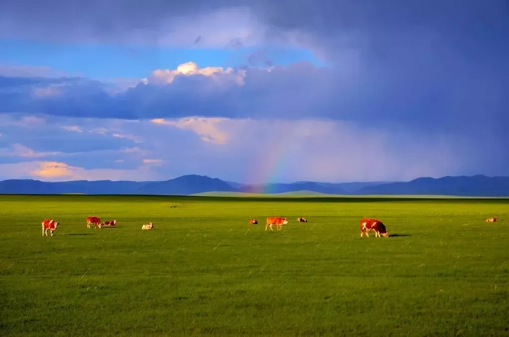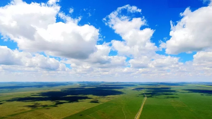 綠色象徵著生命與活力,一株株綠草織就了遼闊無邊的綠色家園,達里諾爾的夏天綠草如茵,生機勃勃,像是鋪了綠色的地毯,綠色大地與蔚藍天空在遙遠的天邊交匯,此時不由自主的哼起了那首“天邊”的優美旋律…