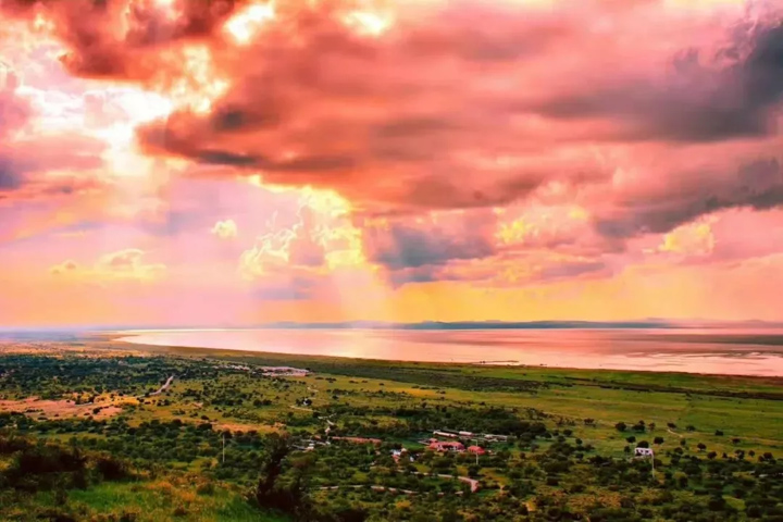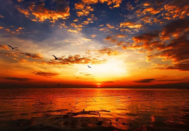 火燒雲給夕陽蒙上了一層面紗,那是一抹黃昏的色彩描繪在達里諾爾的西北岸,此時還有一種黃色正在渲染著達里諾爾南岸的渾善達克沙地和古老的曼陀山脈,這份黃色是屬於秋天,而達里諾爾的秋天是看彩林最美的季節…