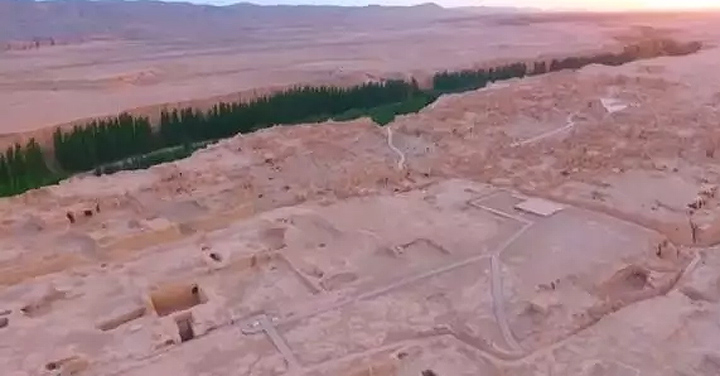 交河故城位於新疆維吾爾自治區吐魯番市高昌區西10公里的亞爾鎮亞爾果勒村,故城建于約30公尺高的島狀臺地上,兩側河谷環繞,臺地平面呈西北東南走向的柳葉形,地勢西北高、東南低,臺地南北長約1750米,東西最寬處300公尺,周長約4,100公尺,總面積 37.6萬平方公尺,建築總面積22萬平方公尺。是目前全國現存最古老、保存最完整的生土建築遺址。