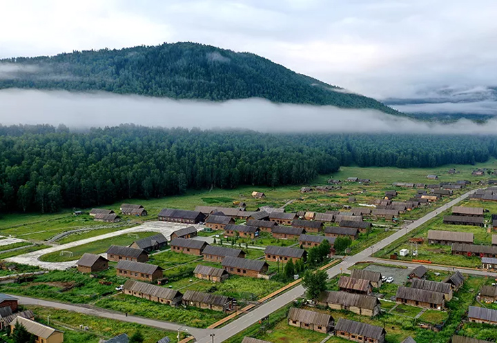 禾木是新疆阿勒泰地區的一個自然村落,有“中國最美古村落”之譽,一年四季皆景。通過無人機鏡頭俯瞰,夏日的禾木雲霧縹緲,景色迷人,原木壘起的木屋散佈村中,與河流、草原、白樺林融為一體,組成一幅美麗的鄉村圖畫。禾木當地居民,利用獨特的自然優勢,通過參與旅遊,勤勞致富,過往狩獵放牧、採集種養的生活方式正在逐漸改變。古樸又現代的禾木,正呈現出新的獨特魅力。