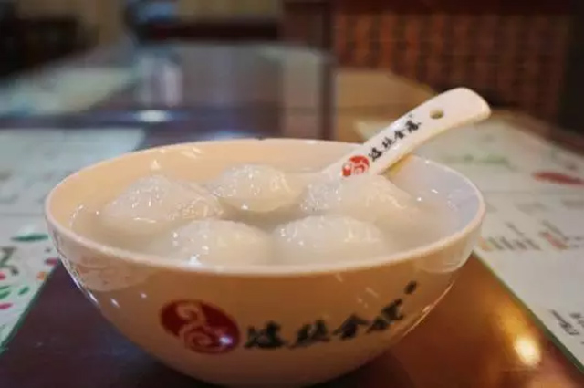 店中最出名的是元宵,他們家的元宵是用糯米、芝麻、白糖、花生、豬油、從頭等做成的。用牙齒把糯米皮咬開,花生的香氣就會噴薄而出,接著一口把整顆元宵吃下,豬油混著蔥香會一直在嘴裡打轉,回味無窮。