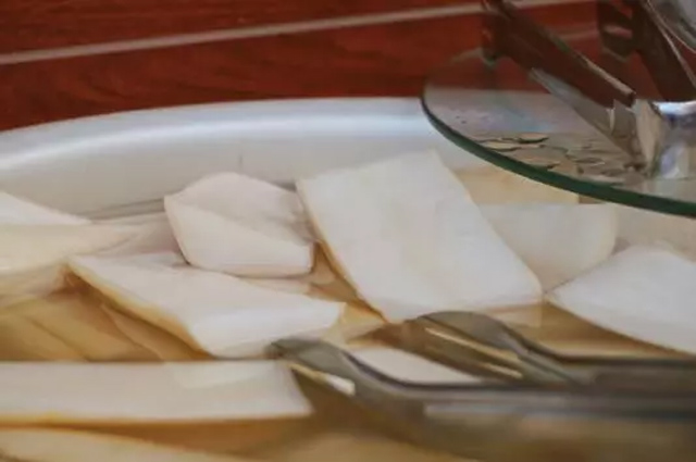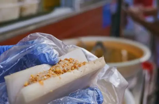 但是你可別小瞧了這一片小小的菜頭酸,醃製的過程並不如你所想像的那麼簡單。小小的一片菜頭酸,可以說是凝結了數代人的心血。飽含湯汁的菜頭酸入口,便能嘗到那股酸爽的口感,一口咬下去滿滿都是脆脆的勁道口感,絕對對得起老字型大小的招牌。最有意思的吃法是,菜頭酸從中切開夾著花生碎一起吃,酸爽、穌香,真是讓人回味無窮。