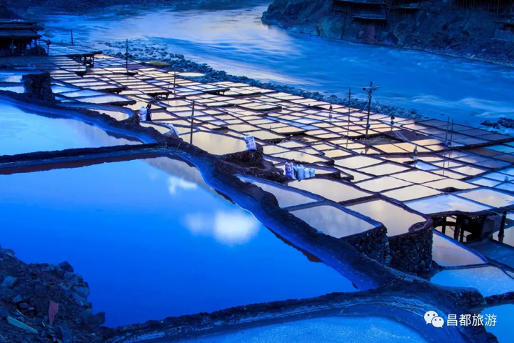 芒康鹽井鄉的鹽田1300多年來一直延續著傳統的曬鹽歷史。江邊岩壁上密密麻麻的鹽田裡,曬鹽女勞作中影影綽綽的身影,也成了一道獨具風情的人文風景線。