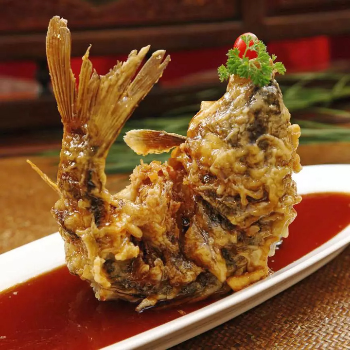 剛出鍋的糖醋鯉魚色澤金黃,外焦內嫩, 嘗一口酸甜可口,香鮮味美,簡直就是味蕾的享受。
