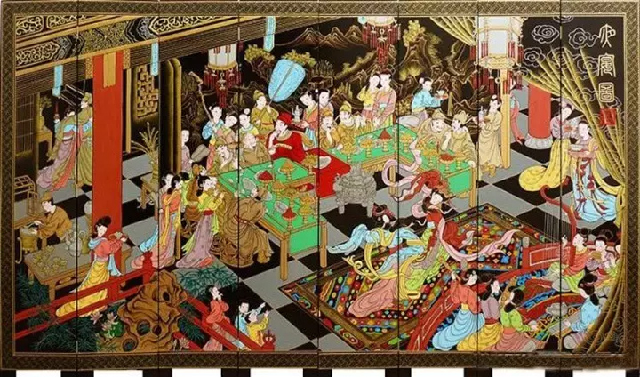 堆漆畫是以木屏作畫板,用彩色油漆堆砌其上,經過抹灰、劃稿、堆灰、磨光、修整、上漆、塗彩等七道工序,成為浮雕式半立體的美術作品。