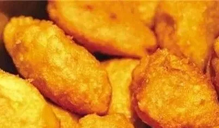 油炸糕,外表金燦燦的顏色,外殼酥脆,裡麵包著豆沙或糖餡,炸糕要做到好吃,必需要使用二種麵粉才行,這樣炸好之會外殼脆裡面軟,吃起來香脆可口。其做法說起來容易,但要做好可就沒那麼簡單了。操作過程:先稱好適量的 小米,將其浸泡好,10小時之後,把小米碾碎。然後將碾碎後的粉和好,在蒸籠裡蒸好,等熟了之後再包進去豆沙或糖餡。最後在油鍋裡炸上一小會就好了。