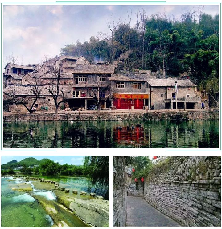 寨前田連阡陌,寨後綠樹成蔭,寨邊有寬闊的石頭河,