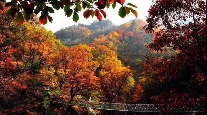 每年逢金秋時節,木劄嶺景區內群峰秋色盈紅,樹葉流丹,呈現出漫山紅遍、層林盡染、絢麗斑斕、嬌豔似火的自然奇觀。