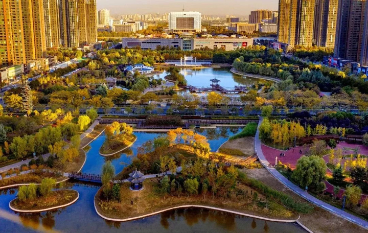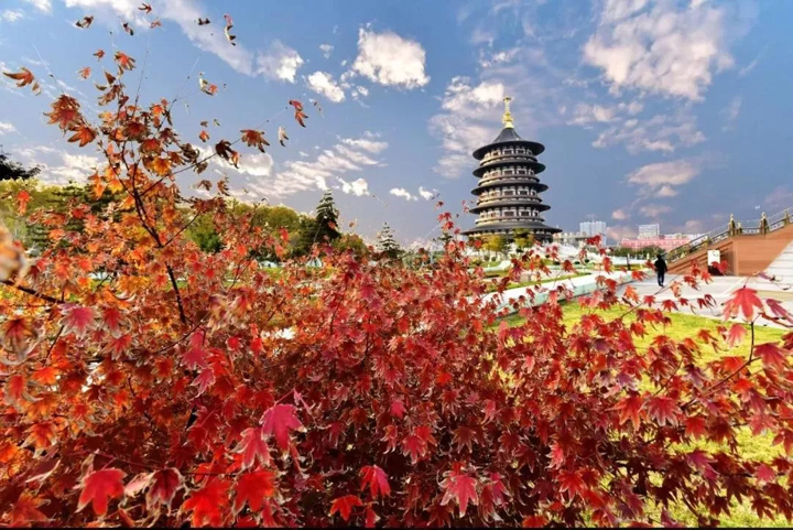 秋色滿城的洛陽美不勝收,隋唐城遺址植物園內,園中小景秋色宜人。