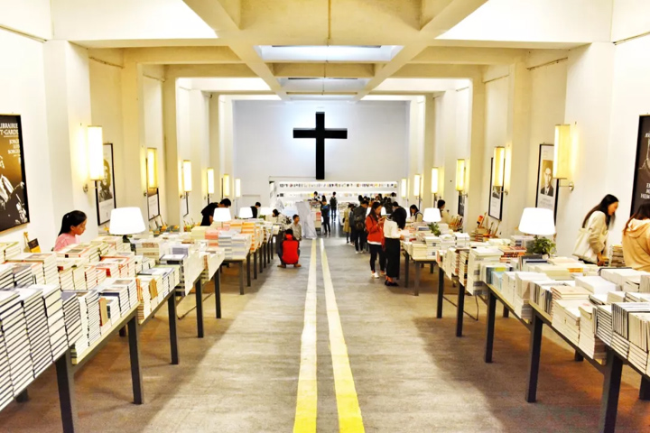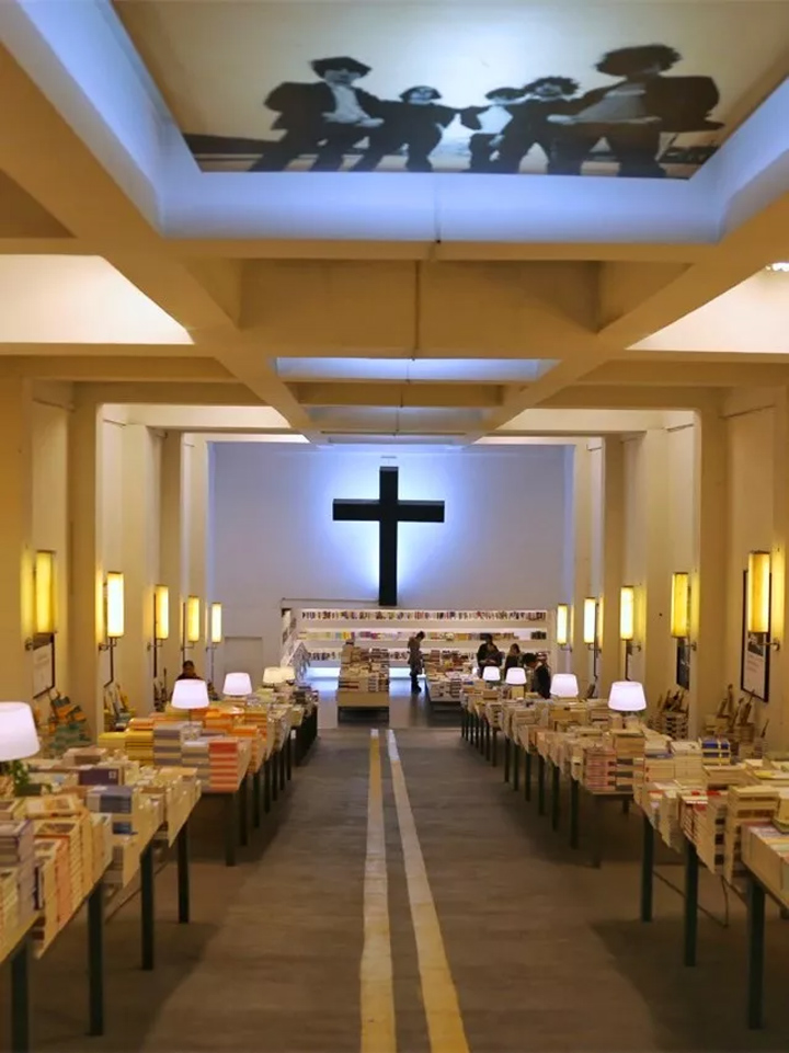 明亮的十字架佇立在前,像海一般蔓延鋪陳的書籍,這裡真的是靈魂的天堂。
