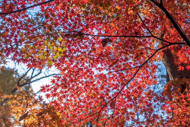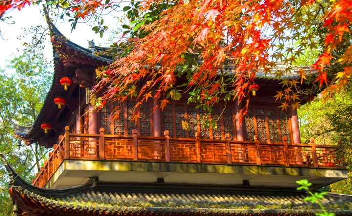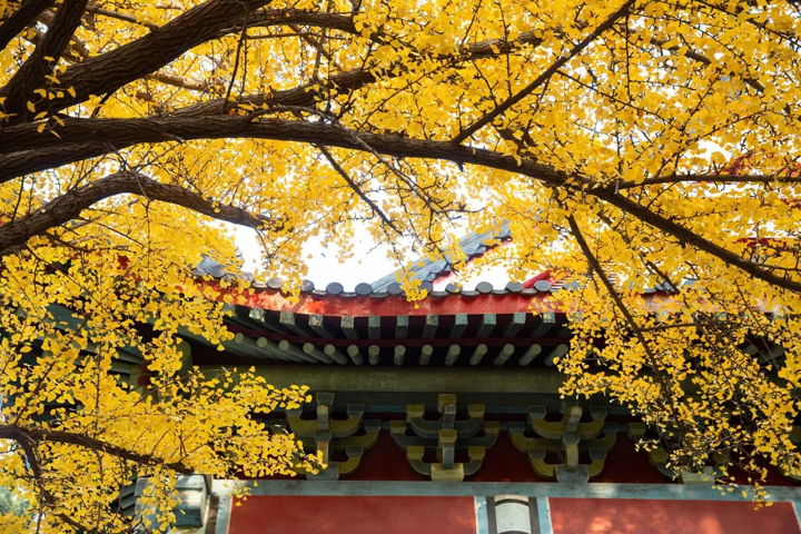 每逢秋季紅楓時節,寺內的紅楓、銀杏、古寺就會與秋色交融,簡直美出了天際。