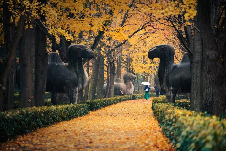 明孝陵的石像路,被稱為“南京秋天最美的路”。
