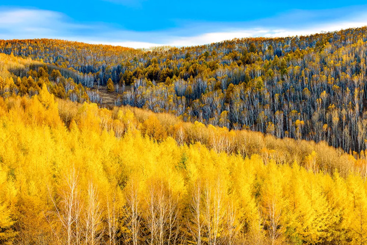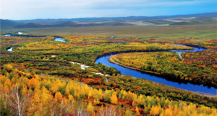 在草原向森林過渡地帶,森林腹地、延伸的河套兩側,村落木屋四周以及曲流濕地,湖泊山巒都能捕捉到秋天偏愛的北國童話之境。尤其是呼倫貝爾東部的大興安嶺山脈上的原始森林五彩斑斕,豐富的色彩使得景色無比鮮美,是攝影愛好者的必去佳地。