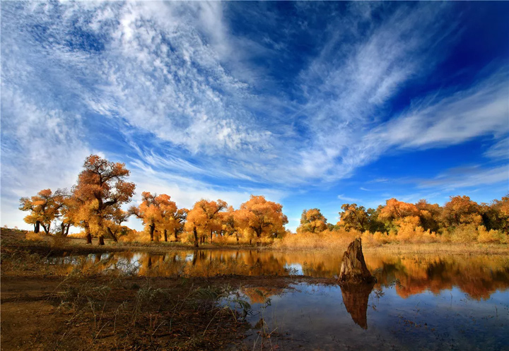 在這個充滿童話色彩的內蒙古西北大地上,9月底已經進入了風景絕美的深秋,在金色妝點下,童話般的浪漫風情更加凸顯。走近胡楊林,你會發現胡楊林猶如一座天然藝術宮殿,它盤根錯節,千姿百態,獨特而美麗。
