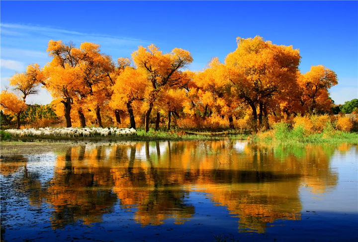 每當遇見秋天,額濟納胡楊林這地方就美得不像話,三千年的等待、20天的綻放,驚豔天地間!秋天的胡楊林,就是上帝饋贈給人類的一幅畫卷,到處都呈現一派明亮的紅色、黃色和橙色景象,美的氣勢磅礴,美的淋漓盡致!