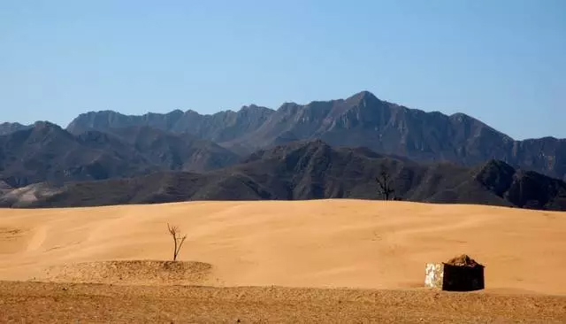 天漠北側是清亮如帶的官廳水庫,南邊是莽莽軍都山脈。在山水之間逶迤著一道金燦燦的沙丘,綿延起伏十餘裡,甚為奇特壯觀,人稱“天漠”。秋高氣爽,果園、草灘、戈壁中突兀而現的金色沙龍,與群山、戈壁、湖泊等地貌描繪出了“大漠孤煙直,長河落日圓”的彩色畫面。