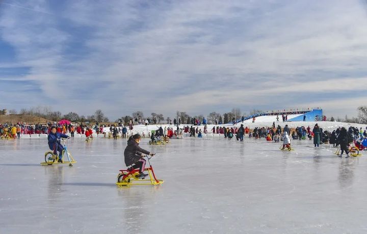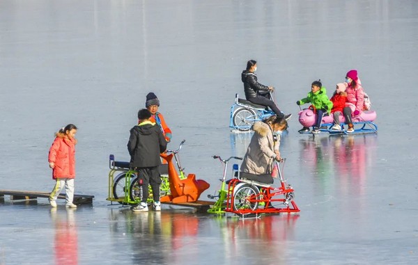 冰場地點在西園沁湖,靠近公園6號門,冰上運動的項目有冰車、海豹冰車、冰場自行車、模擬哈士奇雪橇車等。