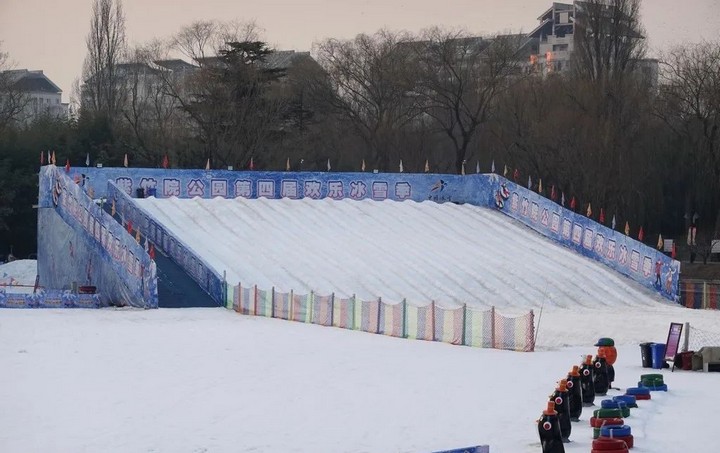 陶然亭冰雪嘉年華佔地3.85萬平方公尺,是市屬公園中最大的雪上遊樂場地。