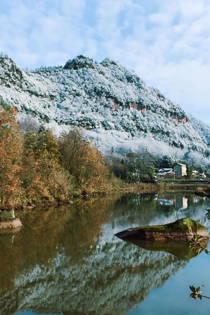 雖然,江津鮮能遇見下雪的景象,但冬日下的四面山氤氳的水汽與飄落的黃葉,亦繪出一副別樣的美景。