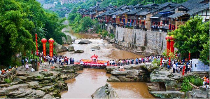 石蟆古鎮張燈結綵,熱鬧非凡
