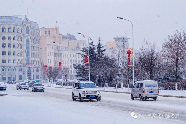雪中的長海,讓你流連,讓你沉醉。 這突然而至的一場雪,讓這座溫雅的小城更加慢下腳步,在海一側顯露著純淨的“素顏”。 積雪漸深,白雪覆城,深邃悠長。 暮色蒼青遇上初雪純白,點綴著長海特有的紅色瓦頂,雪中的海島小城,從容不迫,盡情展現著歲月安好!